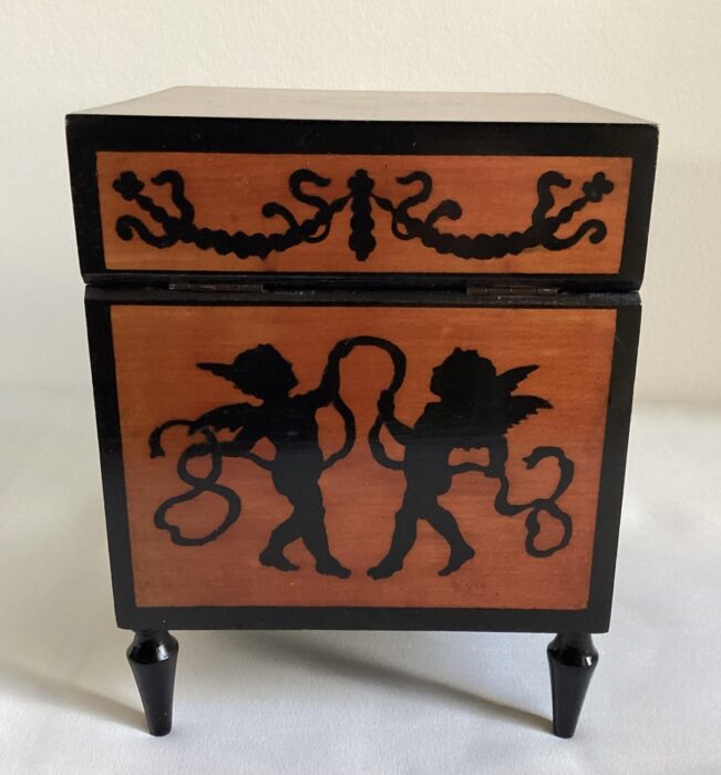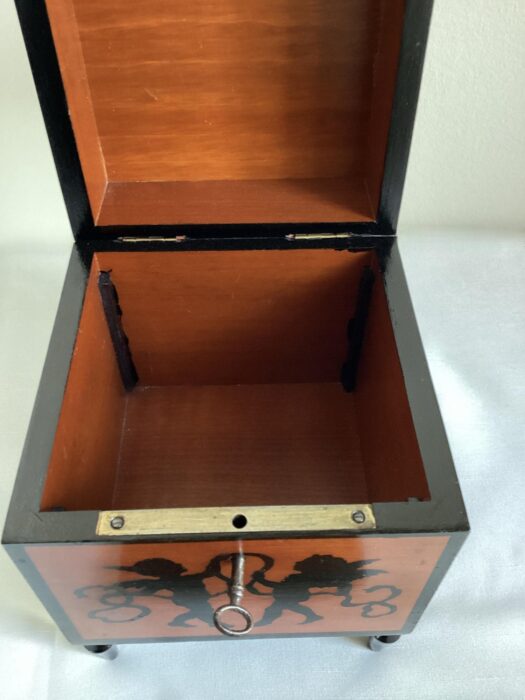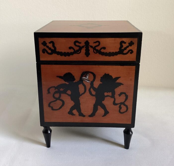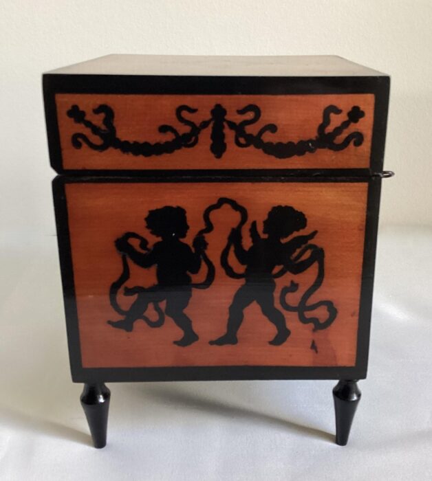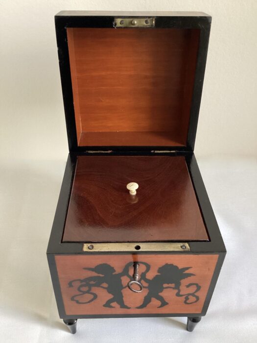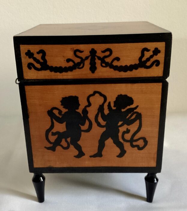 Blond Mahonie Houten Theekistje ca. 1910 op hoge pootjes