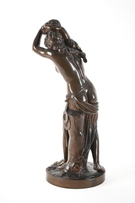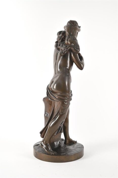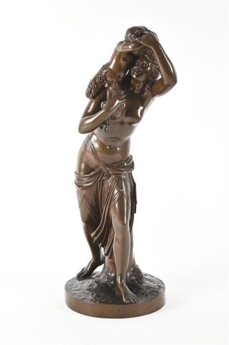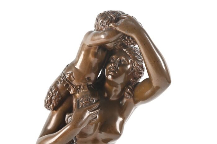 Bronzen sculptuur van een vrouw met Faun – Frankrijk 19e eeuw