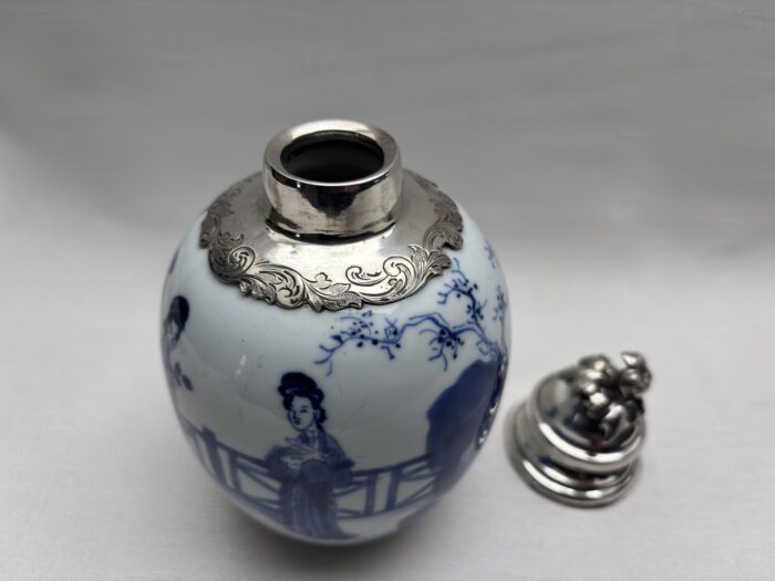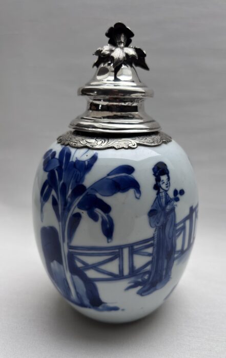 Porseleinen Chinese Theebus met lange lijzen in een tuin naast de bananenboom – Kangxi (1662-1722)
