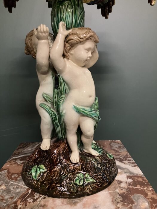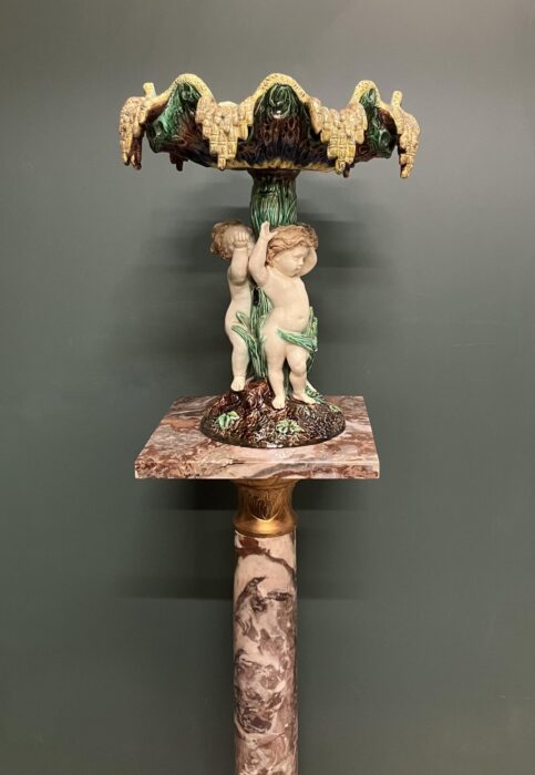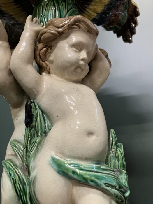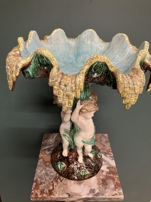 Italiaanse grote Maiolica Tazza / Fruit schaal met putti’s ca. 1900