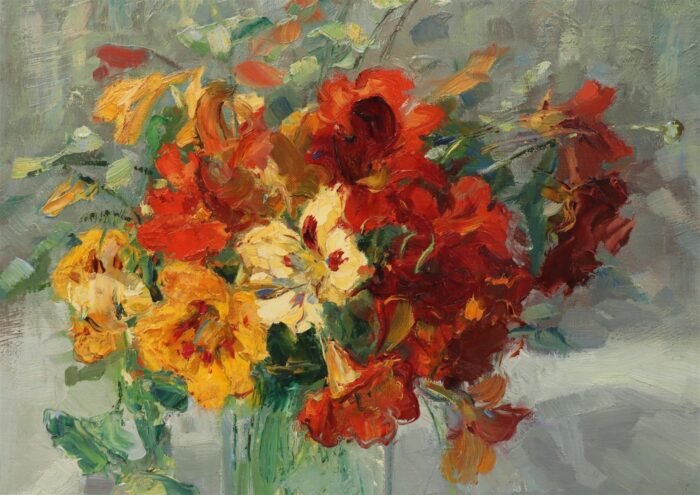 Schilderij – Stilleven van een groene bloemenvaas met indische kers – Susanne Döring Kessler (1870-1936)