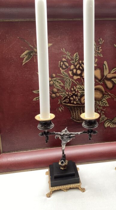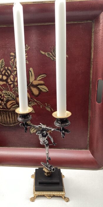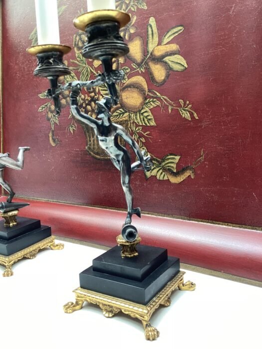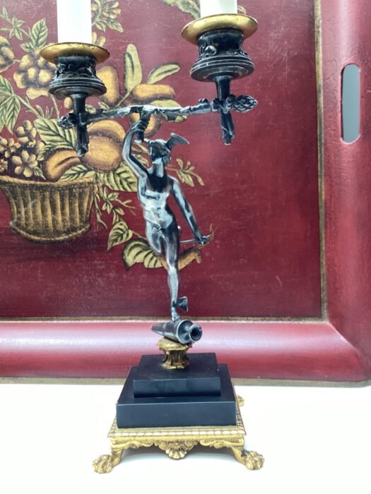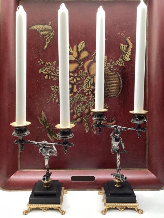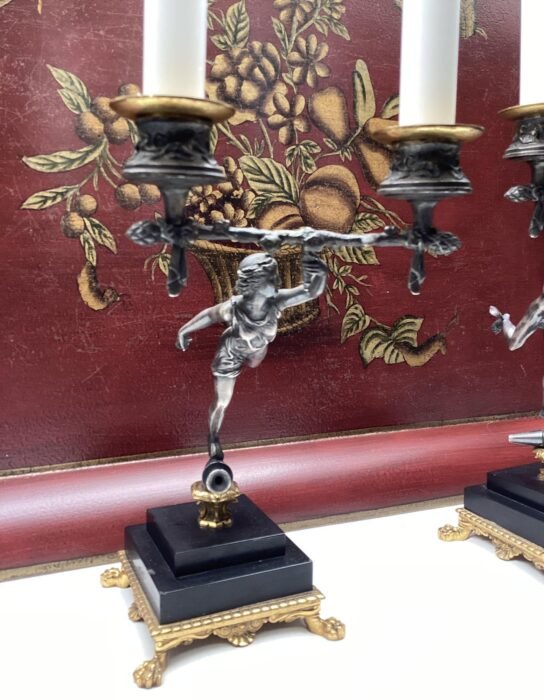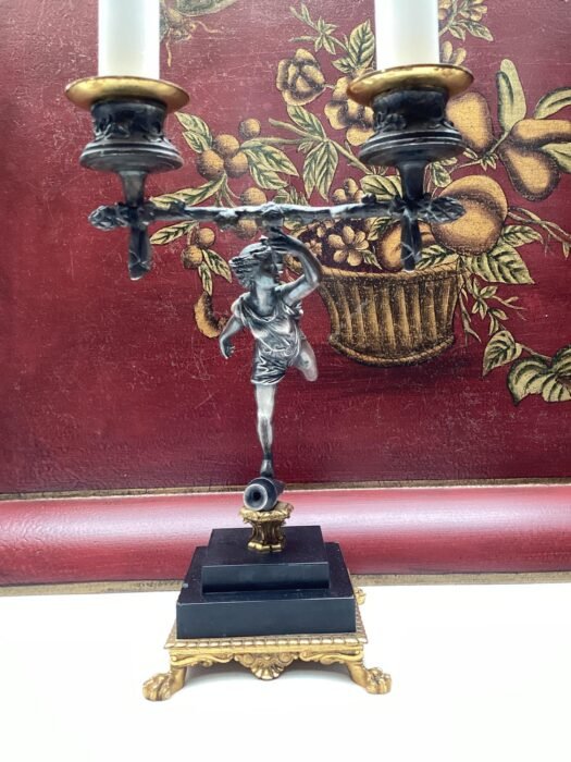 Twee brons/verzilverde Kandelaren – Frankrijk 19e eeuw