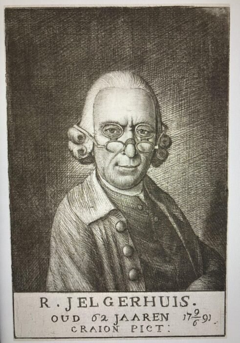 De in Leeuwarden geboren Rienk Jelgerhuis (1729-1806) was in de tweede helft van de achttiende eeuw een populaire en uiterst productieve portretschilder die met name de leden van de gegoede burgerij met zijn pastel vereeuwigde. Over Jelgerhuis is weinig bekend. Hij sympathiseerde met de patriotten (en portretteerde er dan ook veel) maar na 1787 koos hij gauw partij voor de oranjes. Op zijn visitekaartje adverteerde hij zichzelf als ‘portretteur in krion en swartekonst-plaatsnijder’, gevestigd op de Anjeliersgracht, het zesde huis voorbij de kromme tuinstraat.
