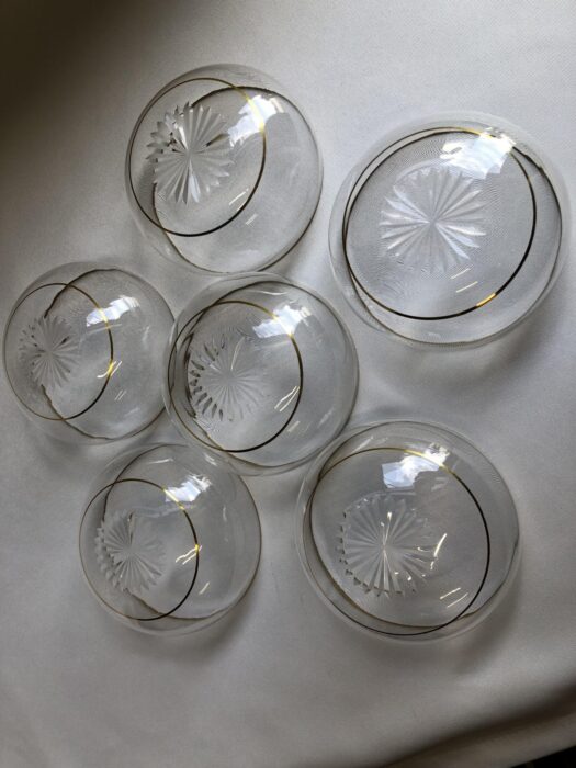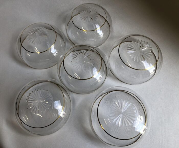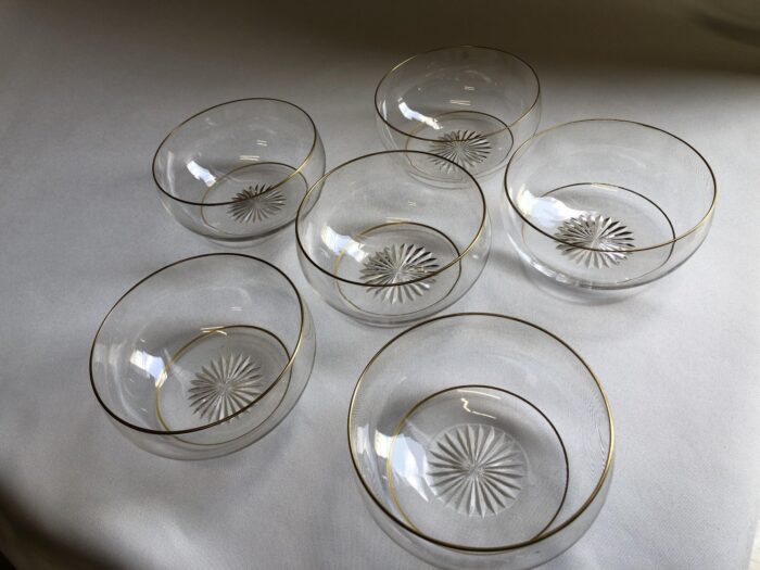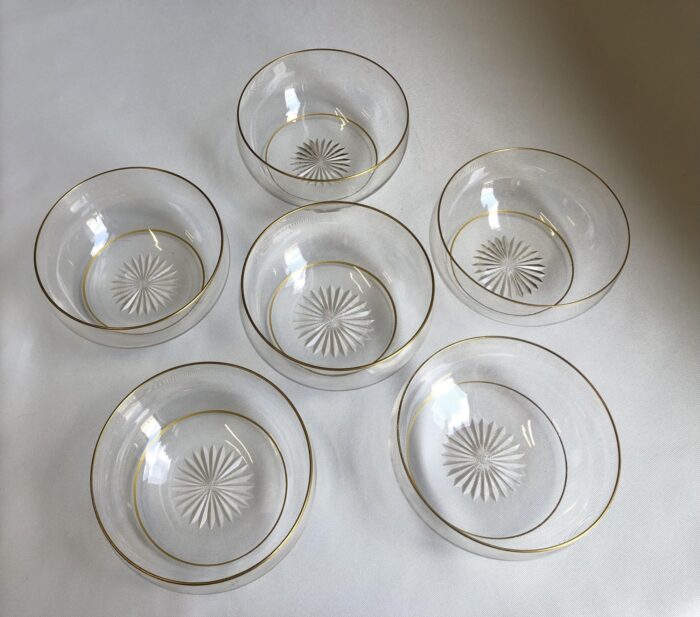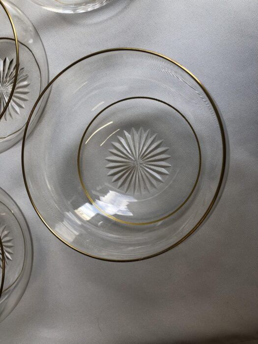 Zes dun kristallen vingerkommen met vergulde randen en sterslijpsel in de bodem – Holland 19e eeuw