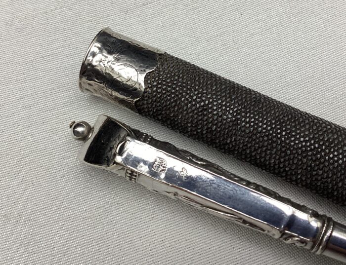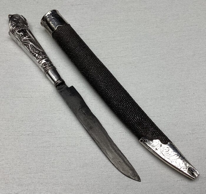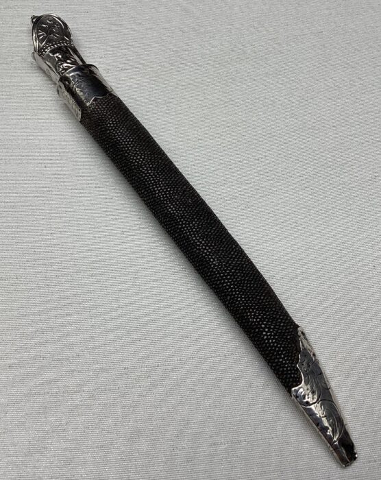 Zilveren reismes in roggehuid foedraal 18e/19e eeuw