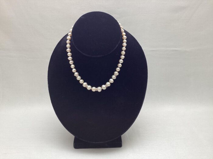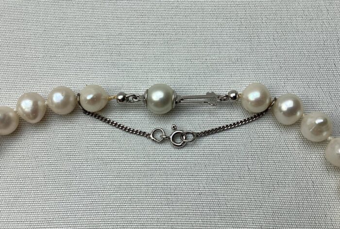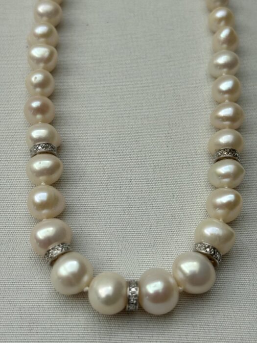 Geknoopt verlopend Zoetwater Cultivé Parel collier met 5 spacers aan een 18 krt. witgouden slot