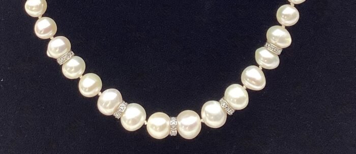 Zoetwater Cultivé Parel collier met 5 spacers aan een 18 krt witgouden slot